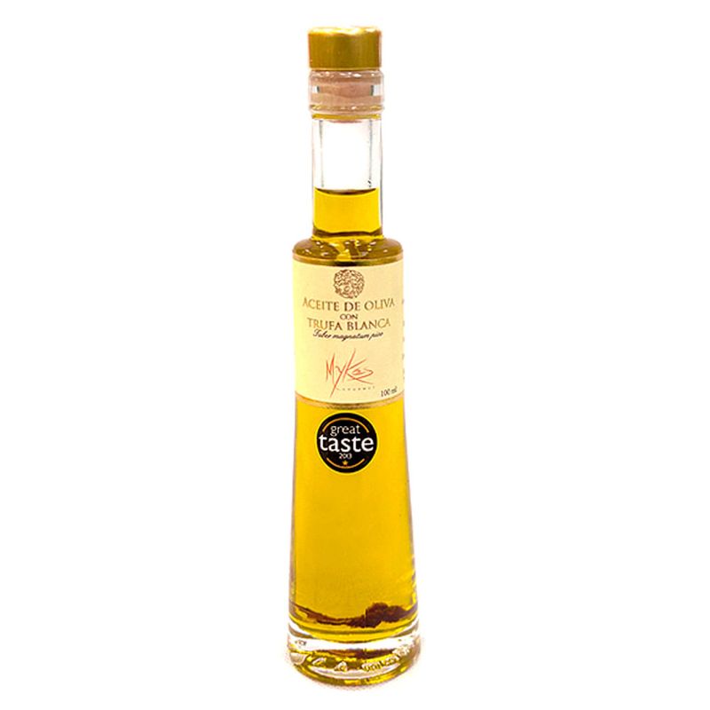 El Aceite de oliva con trufa blanca MYKES GOURMET 100 ml es un producto exquisito creado con aceite de oliva de alta calidad, combinado con aroma de trufa blanca. Ideal para realzar tus platillos, aportando un toque sofisticado y sabroso. Presentado en un envase elegante de 100 ml.