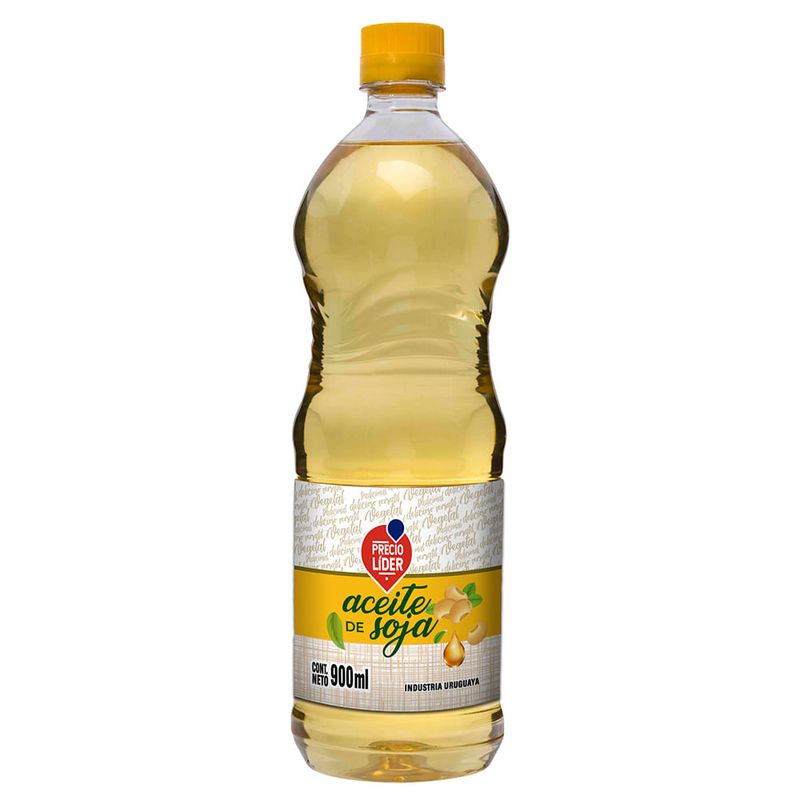 Aceite de soja PRECIO LIDER de 900 cc, ideal para cocinar y freír con un sabor suave y natural. Fuente de ácidos grasos esenciales.