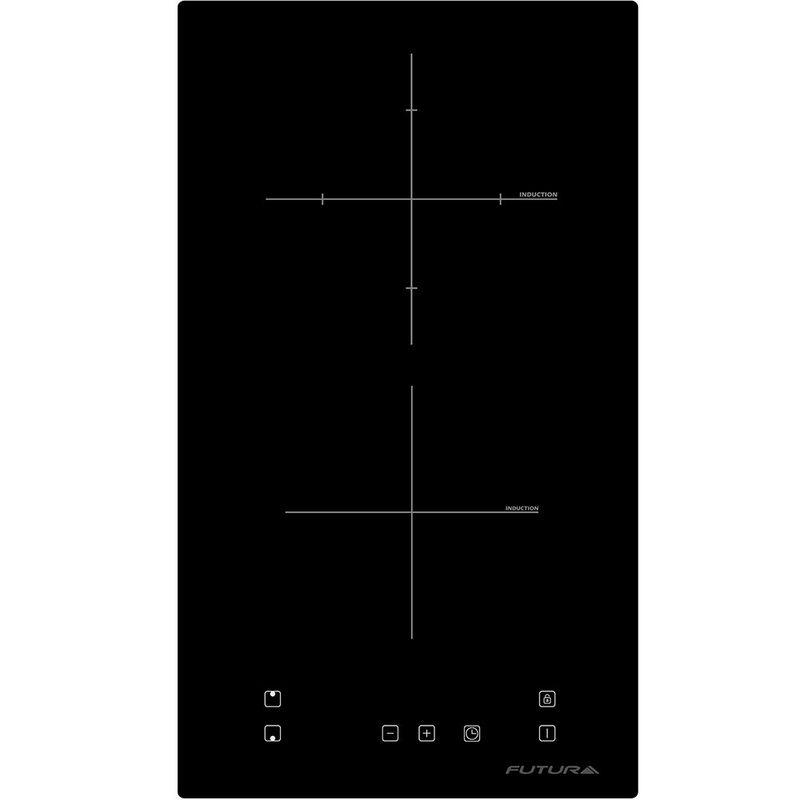 Características principales: de encastre o de sobre mesada; Potencia 3300W; 2 Zonas simples (zona de arriba 1800W y zona de abajo 1200W); Placa en cristal pulido en color negro; 9 niveles de temperatura; Timer 99 min.; Apagado automático de seguridad; Detección automática de utensillos de cocina; Protección contra sobrecalentamiento; Sistema de bloqueo para niños; Indicador de calor residual y medidas: An. x Prof. x Alt. 30x52x5,8 cm.