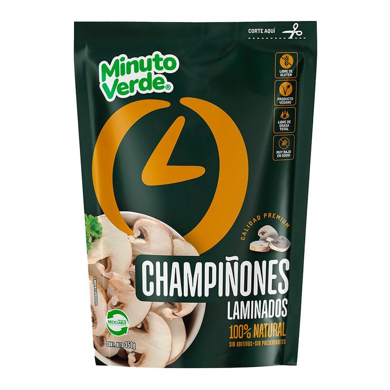 Champiñones laminados MINUTO VERDE 350 g. Producto de calidad.