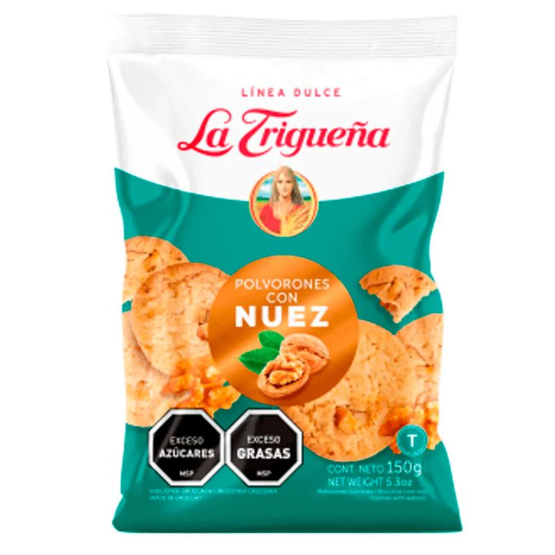 Las Galletitas la Trigueña Polvorones con Nuez son deliciosas galletas tradicionales españolas. Hechas con ingredientes naturales, poseen un exquisito sabor a nuez y una textura suave que se deshace en la boca. Este paquete de 150 gramos es perfecto para compartir o disfrutar solo.