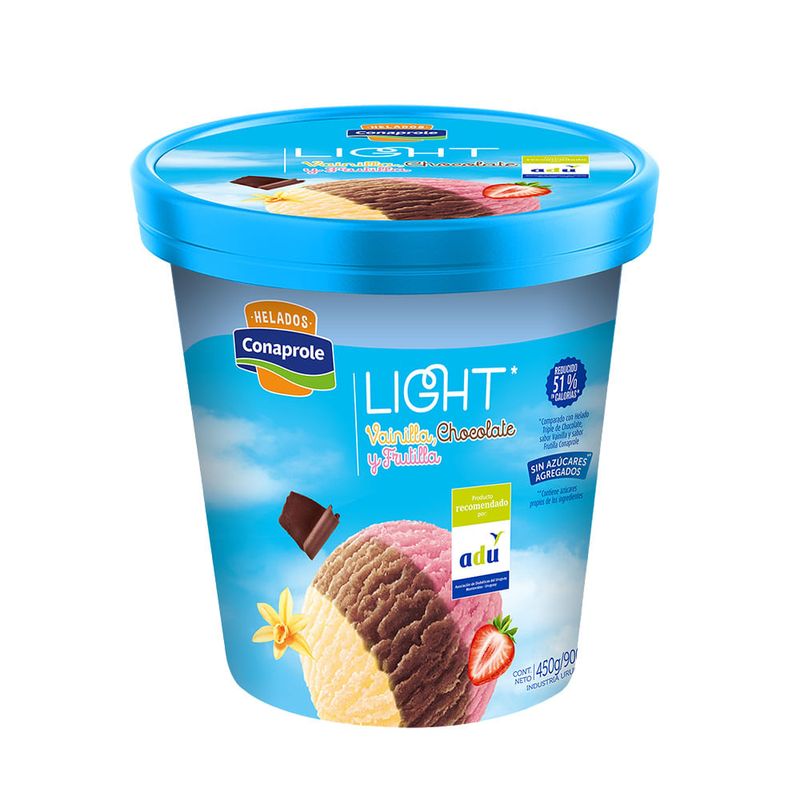 Helado CONAPROLE light vainilla, chocolate y frutilla 900 ml