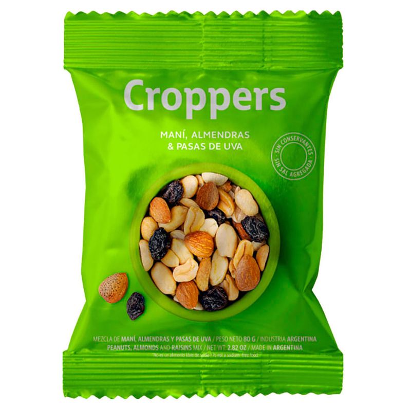 Mix maní alemendras pasas CROPPERS 80 g
