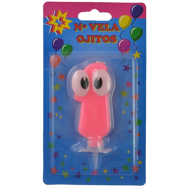 Número 1 con ojos rosados + portavela de plástico. ¡Producto de excelente calidad!