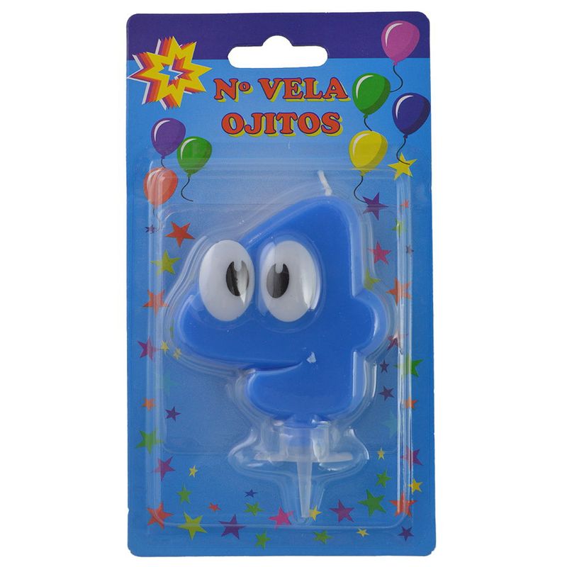 Número 4 con ojos celestes + portavela de plástico. ¡Producto de excelente calidad!