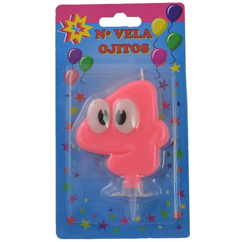 Número 4 con ojos rosados + portavela de plástico. ¡Producto de excelente calidad!