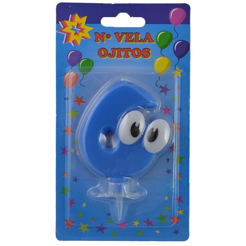 Número 6 con ojos celestes + portavela de plástico. ¡Producto de excelente calidad!