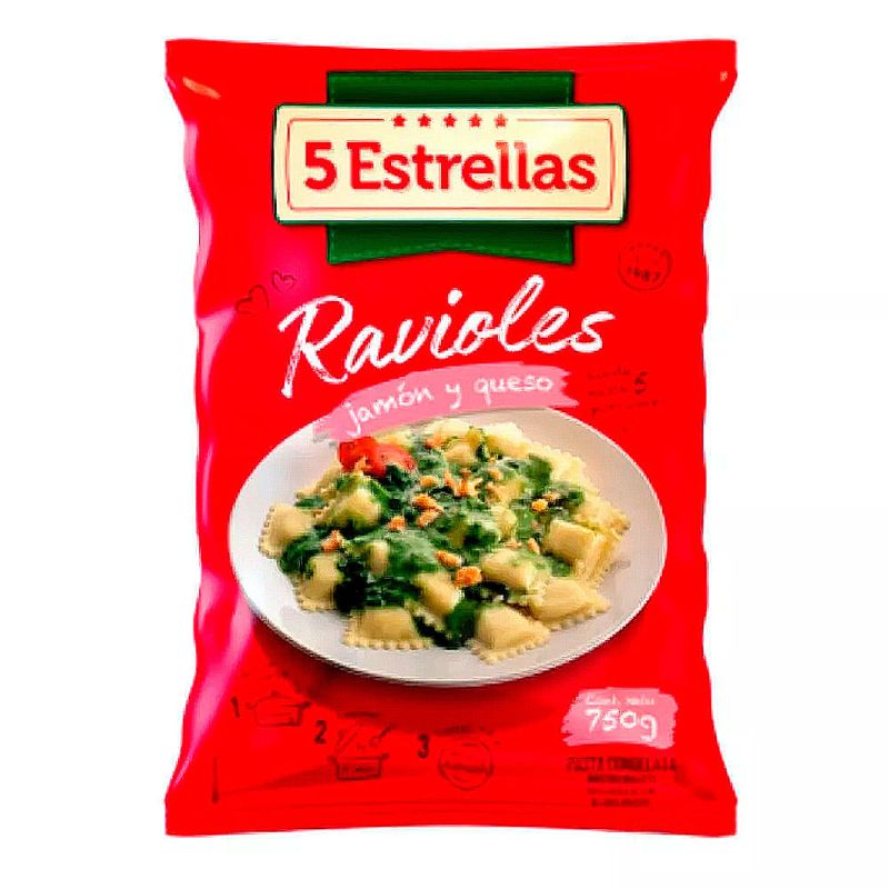 Los Ravioles de jamón y queso 5 estrellas son delicias gourmet listas para cocinar, con un relleno generoso de jamón y queso cremoso. Cada paquete de 750g contiene abundantes porciones, ideales para una comida familiar. Su sabor auténtico y calidad superior garantizan una experiencia culinaria 5 estrellas.