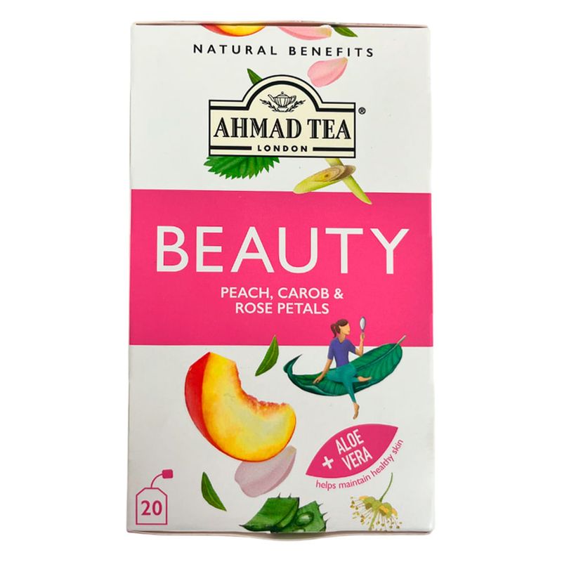 El Té AHMAD benefits beauty es una deliciosa infusión. Cada caja contiene 20 sobres con mezcla de rooibos, manzanilla, miel y cola de caballo. Promueve la belleza interna y la salud de la piel, aportando una sensación revitalizante. Ideal para aquellos que buscan un bienestar integral y un estilo de vida saludable.