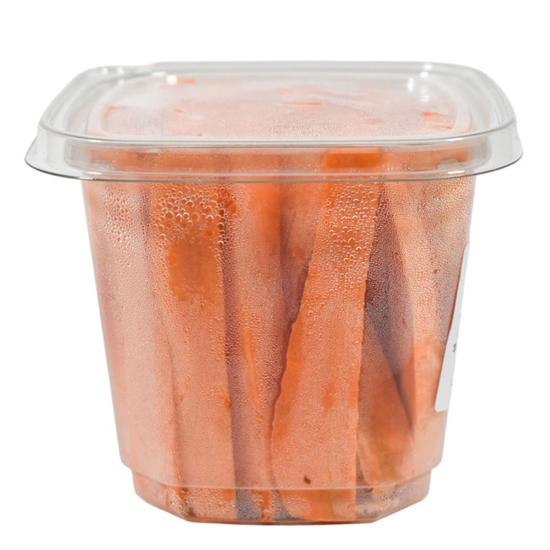Zanahoria cortada en tiras y envasada al vacío, lista para usar. Este envase de 400 g es conveniente y fresco, ideal para ensaladas, salteados, guisos y más. Aporta color y sabor a tus platos de manera rápida y fácil.